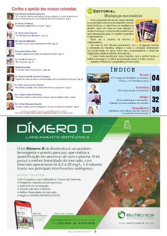 “Ciência e pesquisa são a base das políticas de saúde”, pág. 14 Diagnóstica, Análises Clínicas, Biomedicina.