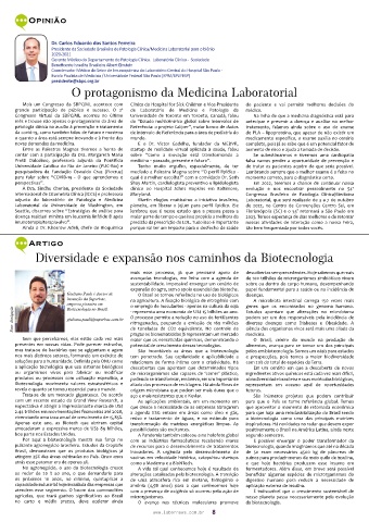 Presidente da Sociedade Brasileira de Patologia Clínica/Medicina Laboratorial para o biênio